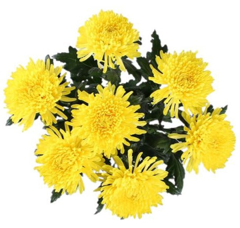 - Magnum Yellow Chrysanthemu: known for their vibrant, sunny color and large, bold blooms, yellow chrysanthemums symbolize happiness, optimism, and longevity. The rich yellow tones bring a sense of energy and vibrancy, making this bouquet perfect for adding a touch of brightness to any setting.
