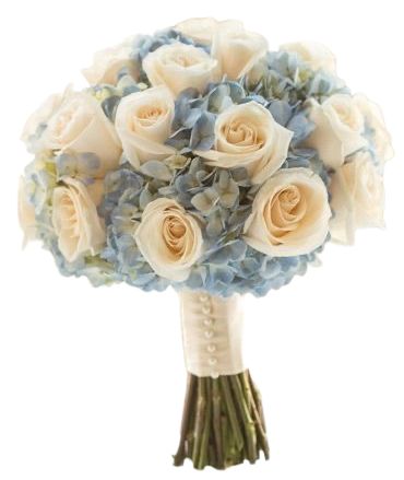 The Pale Blue Hydrangea with Ivory Roses Bridal Bouquet is a breathtaking combination that captures the essence of sophistication and romance. Perfect for a bride seeking a timeless yet unique floral arrangement, this bouquet blends soft, delicate hues for a look that is both classic and serene.